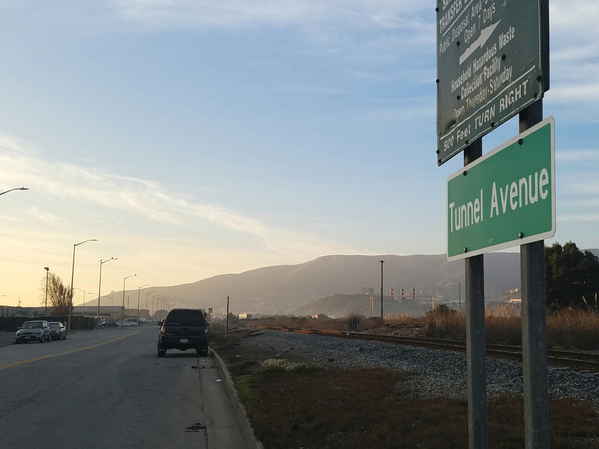 I took this first picture soon after getting onto this stretch, Tunnel Avenue close to SF City border, the first view of the open space. Caltrain tracks are immediately to the right. Further to the right is San Bruno Mountain. Once I get bored with this route, I’ll explore going to work around the other side of the mountain. That would add a couple of miles and a couple of hundred feet of elevation gain; good for training