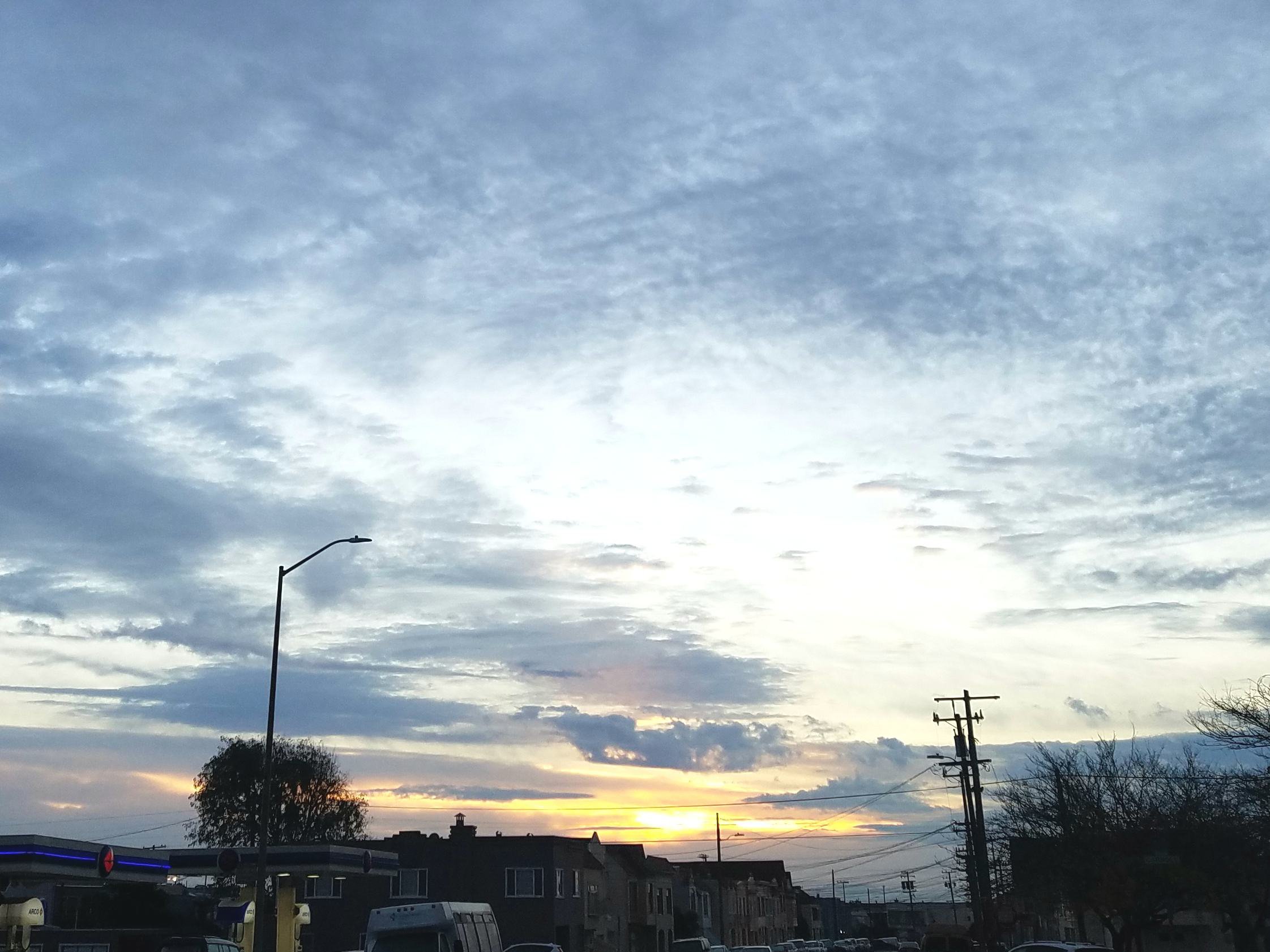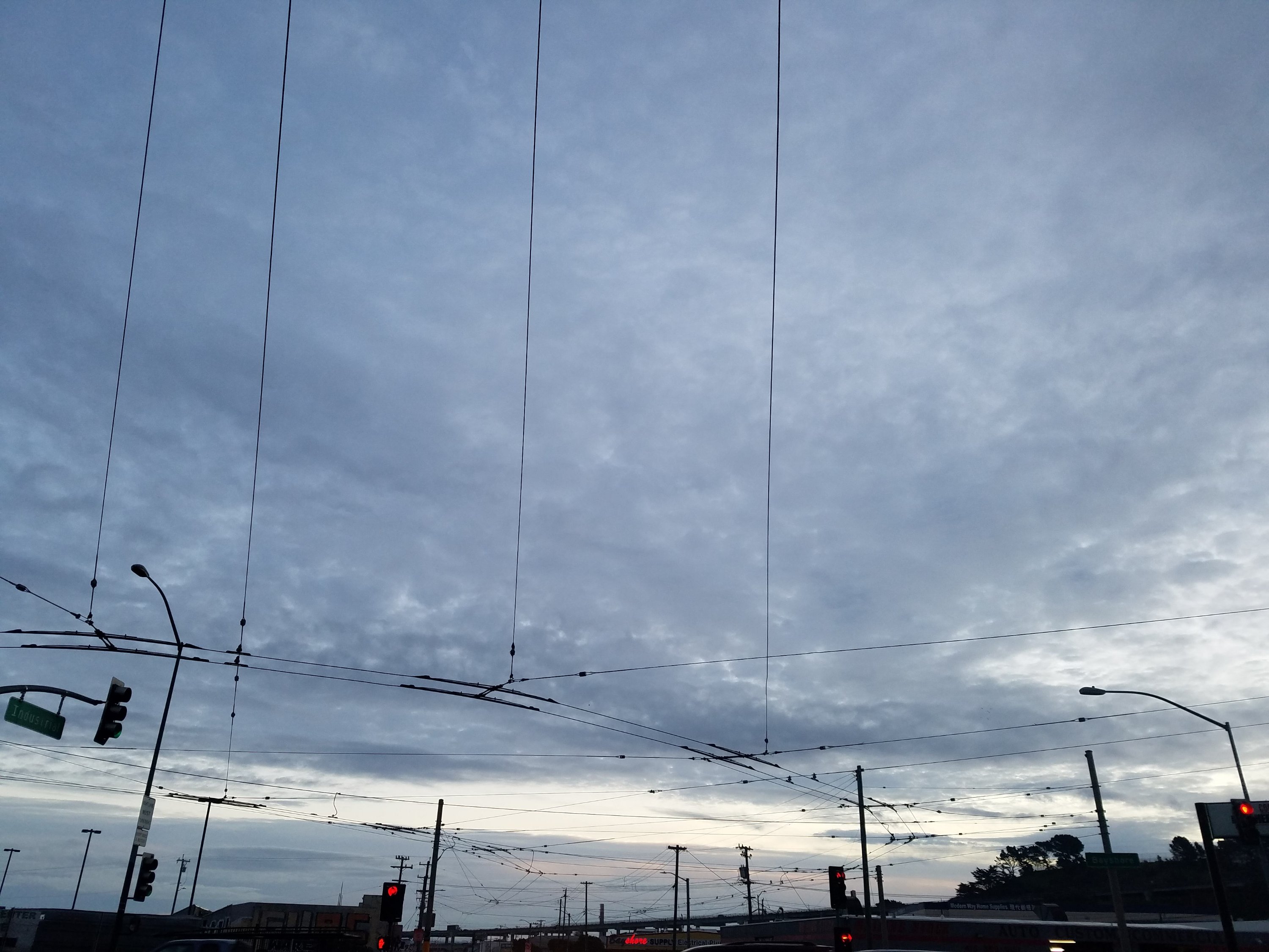 On Friday, I left home a little earlier than usual in the morning, so I was regaled with a sunrise progression. The rain was coming, too, making the sunrise particularly spectacular, and I tended to look East, because this ride was dedicated to Kent, and he lives right there across the Bay. Here is a little gallery of what I am talking about