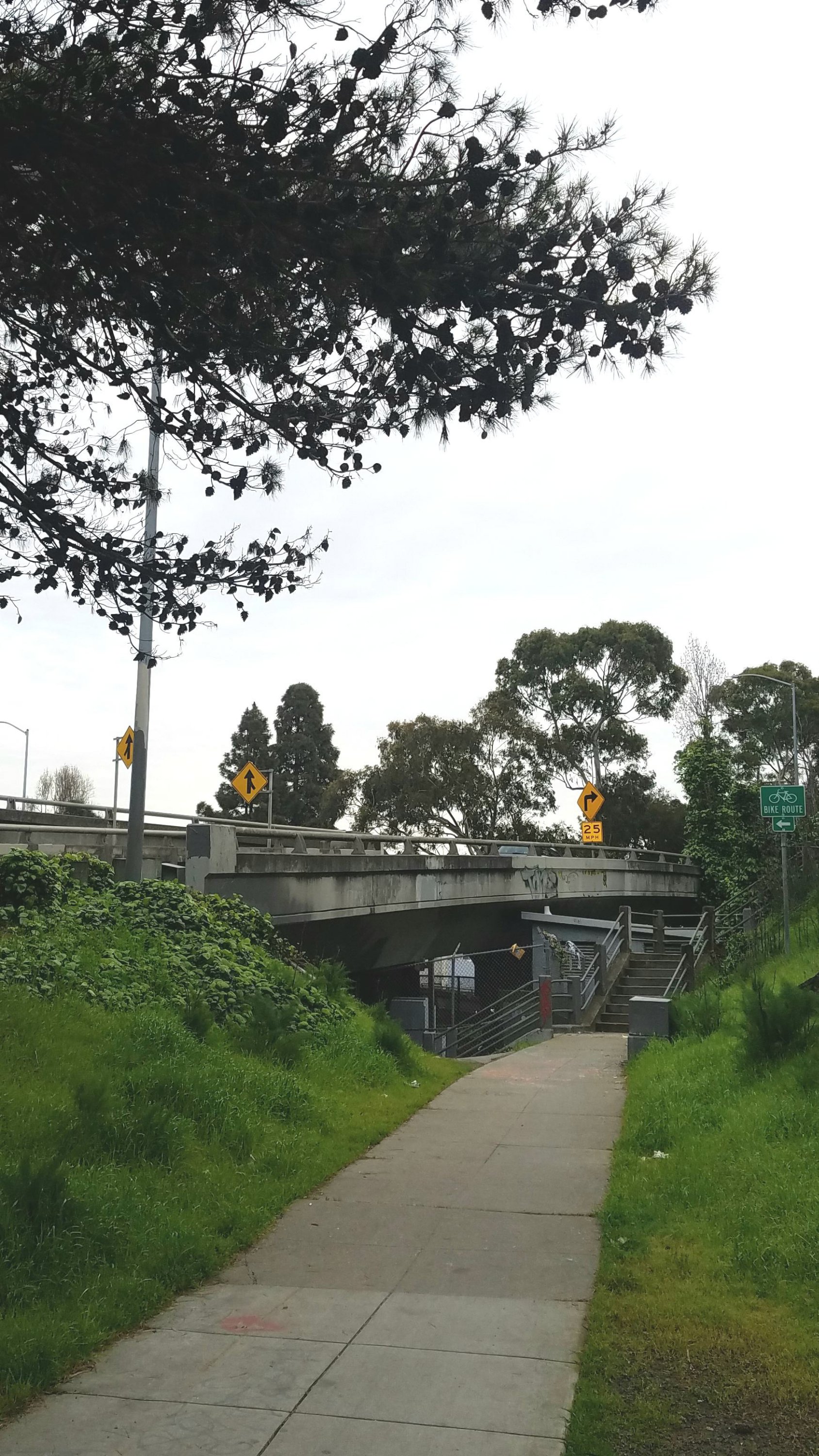 I left a little bit before 7:30 AM, which on a Friday meant not too much traffic yet, so I could relax and enjoy how green everything was and how it was light out and not too cold either, although my mind was churning a little bit about the night before – more about that later in this post. I stopped to take a picture right before dipping underneath the highway interchange and into a little homeless encampment. A confluence of all things here. Grass, trees, aging concrete, bike route, busy highway, lovely morning sky, homelessness, this privileged cyclist stopped to take a picture…