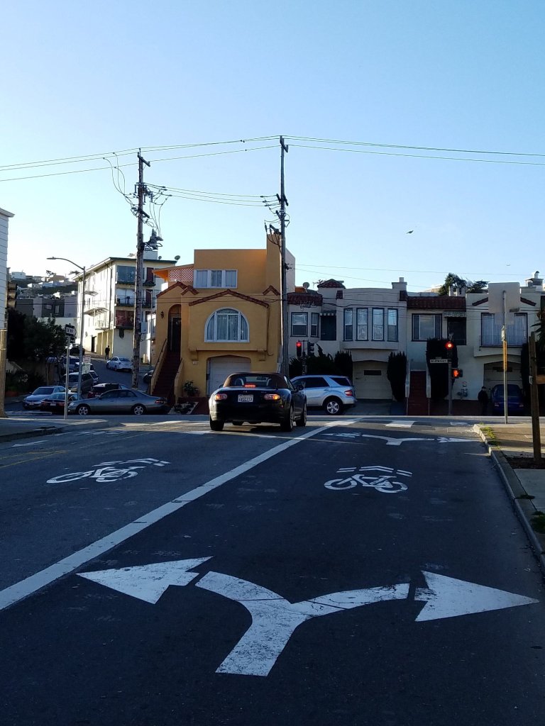 Looking from the mountain side, the clouds didn’t get too far yet, but the day remained lovely. After work, I had an appointment in Nob Hill, so I rode the “regular” way along the Bay, with the views of the East Side of the Mountain, then through the city during rush hour (good times!), and 3 miles back home after my appointment, clocking in some 26 miles total for the day.