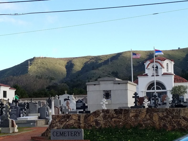 Serbian Cemetery in Colma, West side foothills of San Bruno Mountain