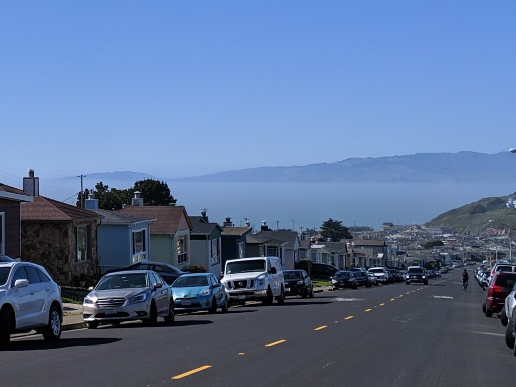 To get to Pacifica, we headed South on Alemany, much like when I go to work, but then instead of turning toward the Bay and around San Bruno Mountain, we proceeded toward the Ocean, ascending toward and over the Skyline Blvd.